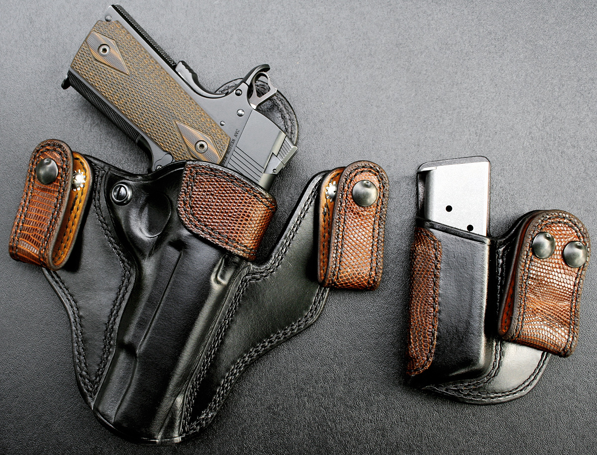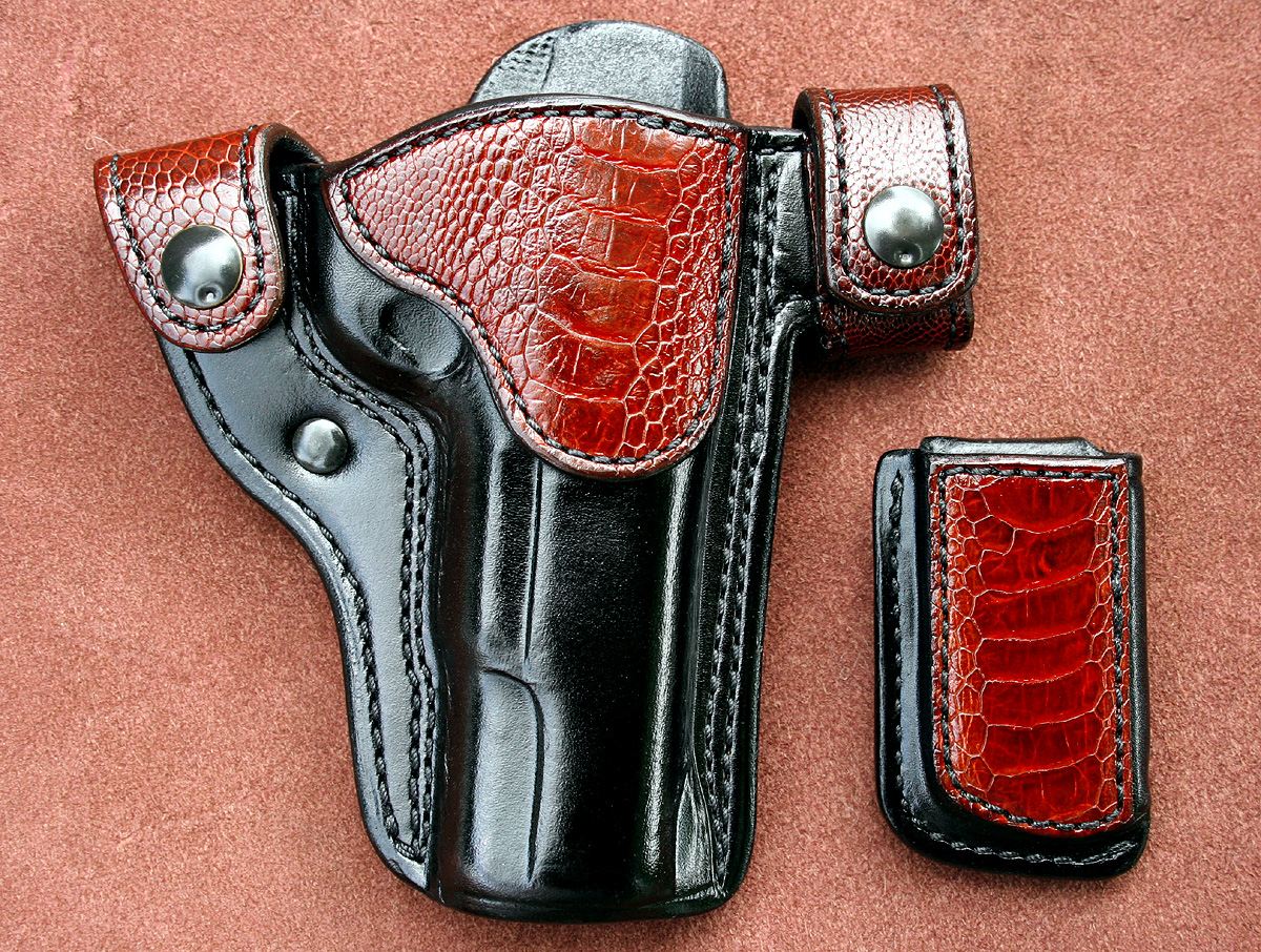 Below are just a few designs. I am in the process of adding more photos to illustrate some recent work. I can do many different types of custom work including exotic skin, air-brushing, different color leather dyes, stitching colors.