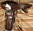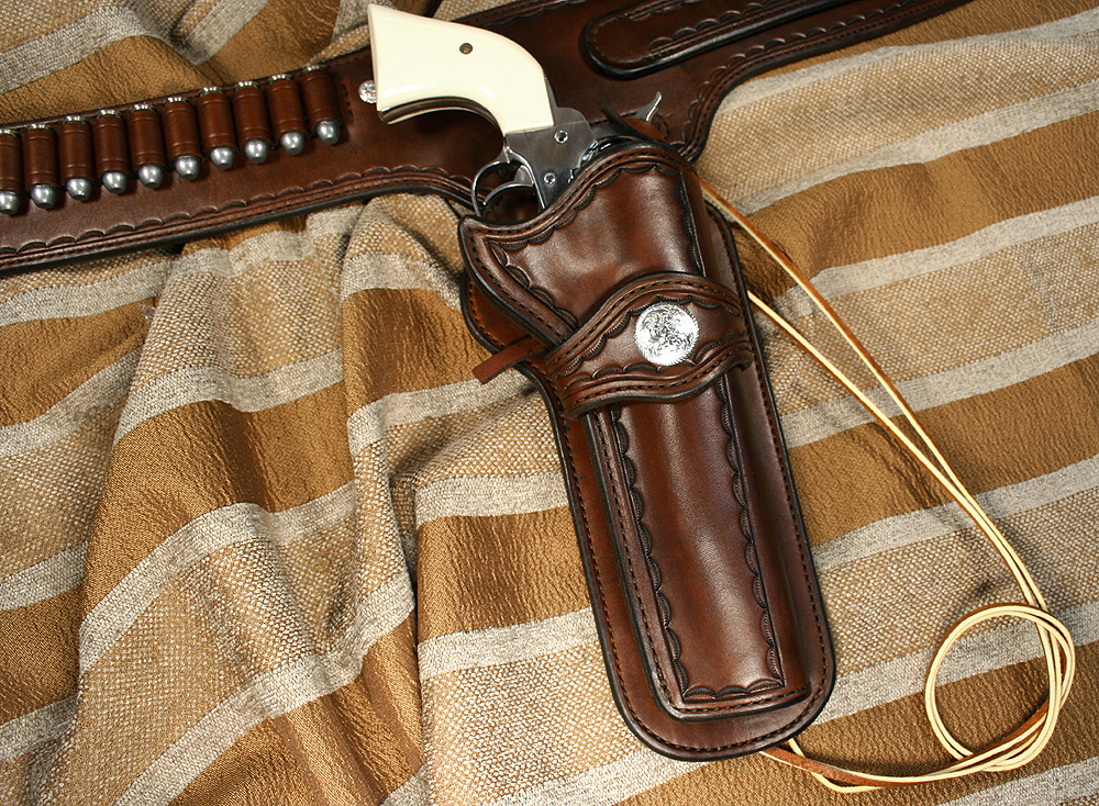 Hello, thank you for your interest in my custom western gunleather and western gun holsters for cowboy action shooting. Please understand, the effort and exquisite quality of old world saddlery and harness work I use to create these Western Gun Leather Rigs should not be confused with lesser quality, fast-production type of work. Few leathersmiths/makers still use this type of craftsmanship because it is labor intensive and requires a geat deal of skill. After I am dead, I want someone who sees my western gun belts and western gun holsters to say, "after all these years this rig still looks beautiful... who made this gun leather?" Troy Harp-Brigade GunLeather. I hope the photos illustrate the quality you will receive. Please feel free to call me with any questions you have.