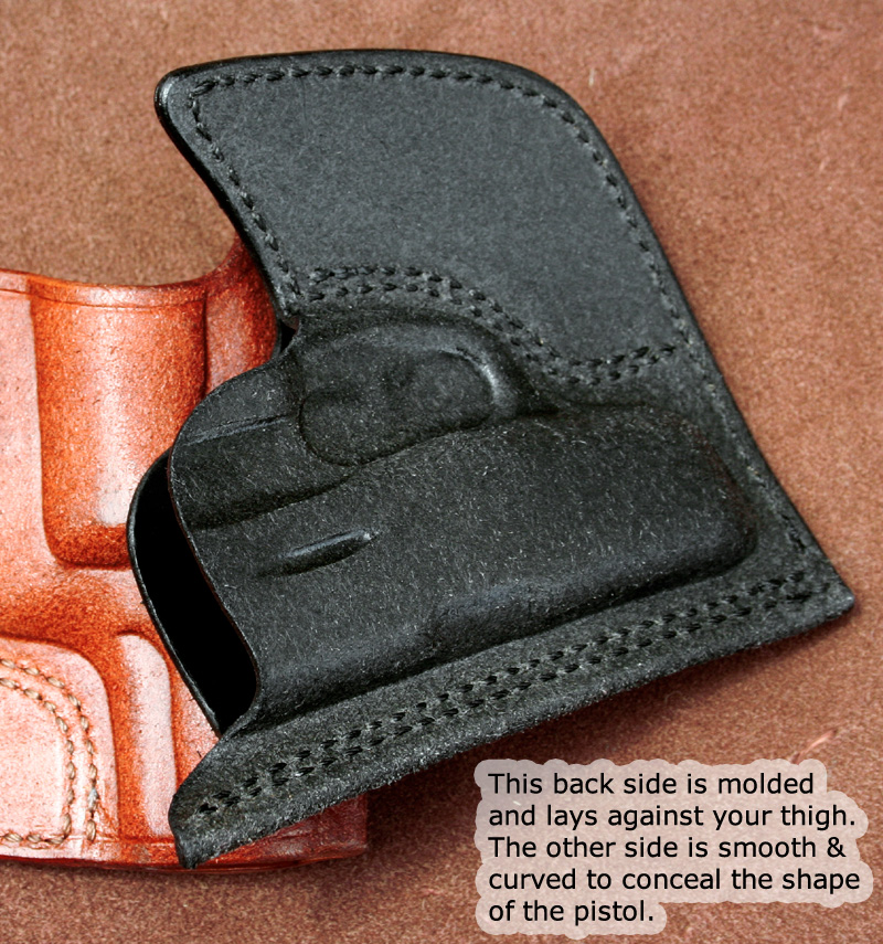 The holster is built textured side out for a smooth slick interior against your pistol
