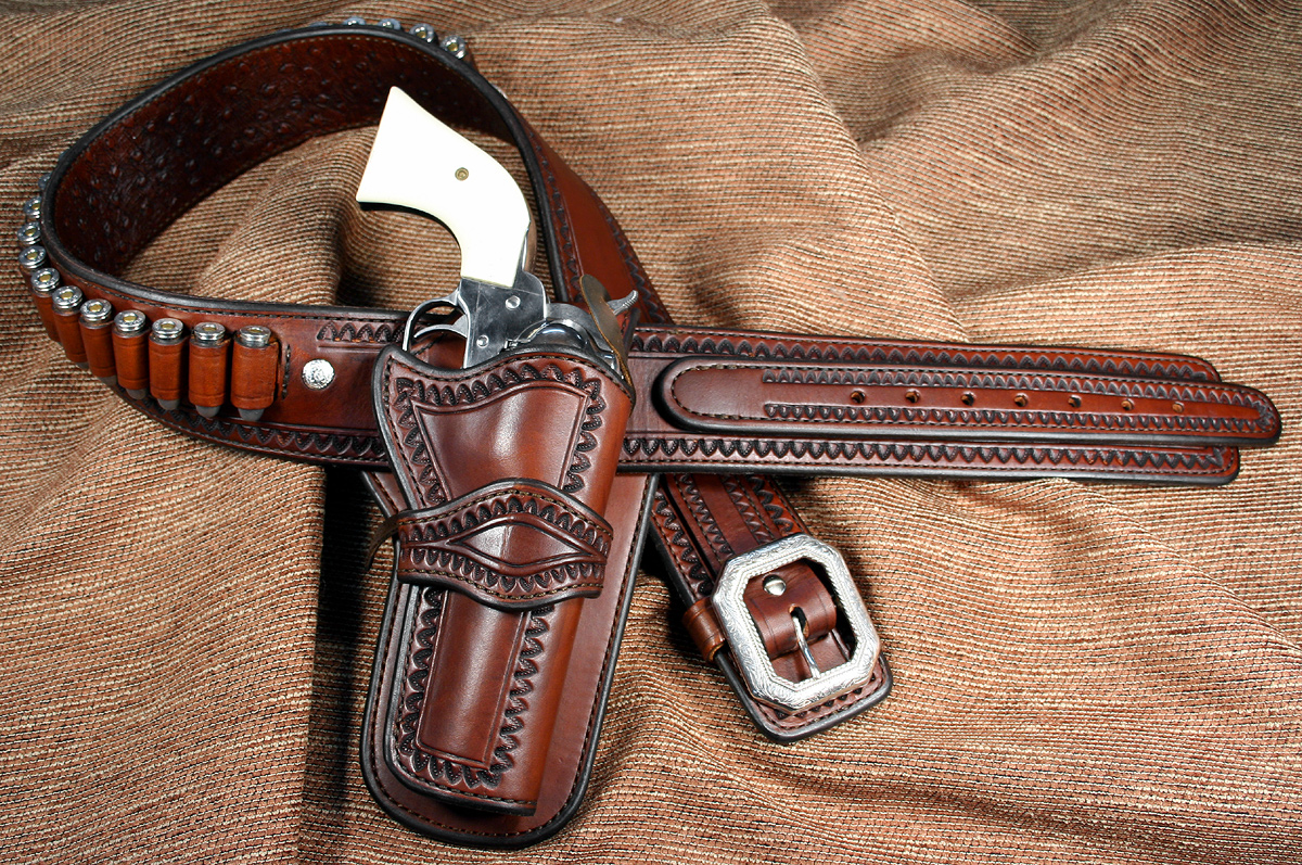 Hello, thank you for your interest in my custom western gunleather and western gun holsters for cowboy action shooting. Please understand, the effort and exquisite quality of old world saddlery and harness work I use to create these Western Gun Leather Rigs should not be confused with lesser quality, fast-production type of work. Few leathersmiths/makers still use this type of craftsmanship because it is labor intensive and requires a geat deal of skill. After I am dead, I want someone who sees my western gun belts and western gun holsters to say, "after all these years this rig still looks beautiful... who made this gun leather?" Troy Harp-Brigade GunLeather. I hope the photos illustrate the quality you will receive. Please feel free to call me with any questions you have. |